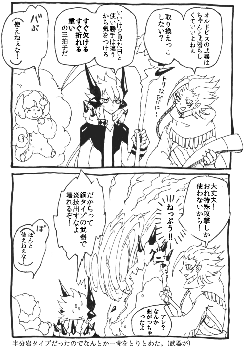 ↑これちょっと壮大な勘違いのまま描いてて、この時なぜかメガプテラが鋼・岩タイプだと思ってました。正しくは岩・飛行タイプのままです。なのでこうはなりません!よかったね!