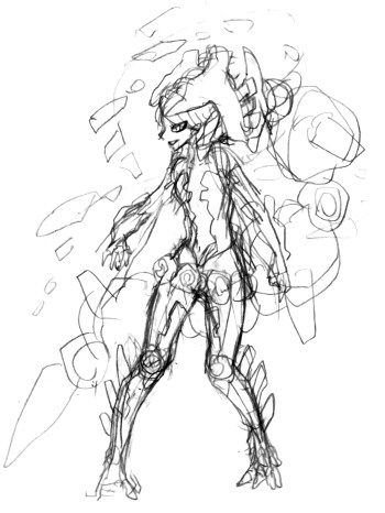 こういう描いた本人しかどう描いてあるか分からないであろうグダグダな落書きから作ります。上手くいけば一発描きで外見が決定するけど何度練り直しても決まらないキャラもいます